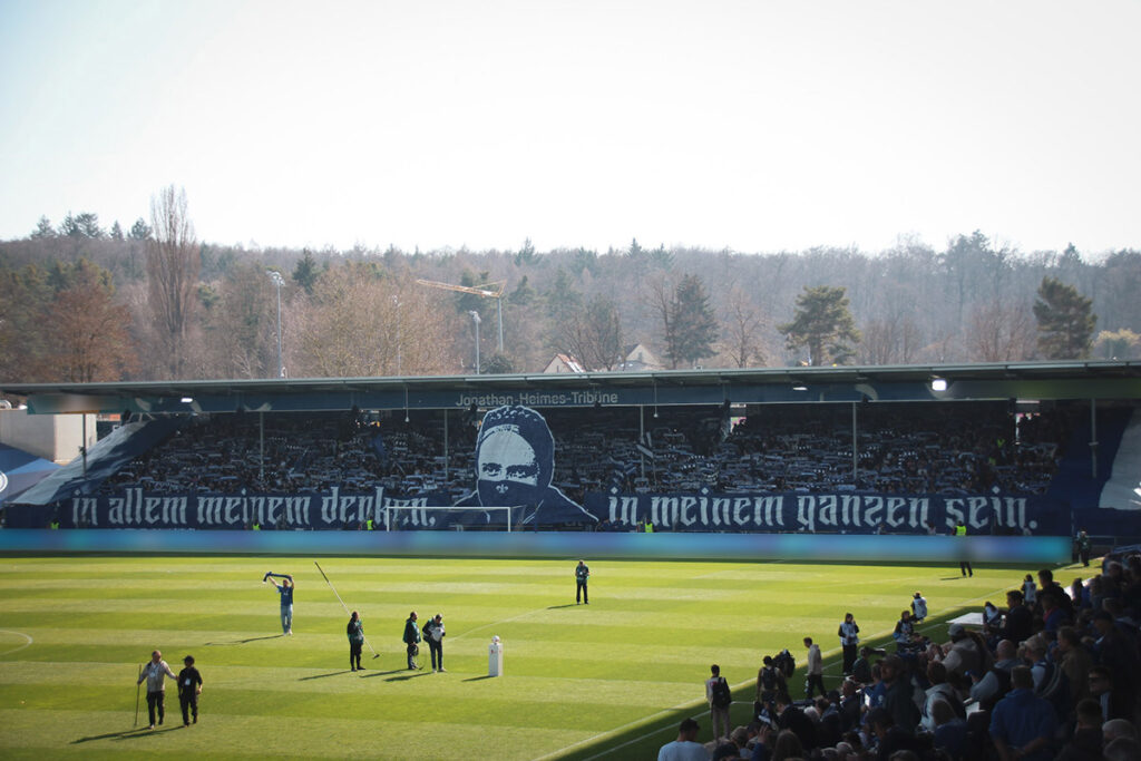 Wir zeigen heute das Konterfei von Luise Büchner, vermummt mit einem Lilien-Schal und dazu einen Satz zu unserem Leben als Fans & Ultras passenden Satz aus einem ihrer Gedichte: „mit allem meinem denken. mit meinem ganzen sein.“ als Spruchband vor der Süd.